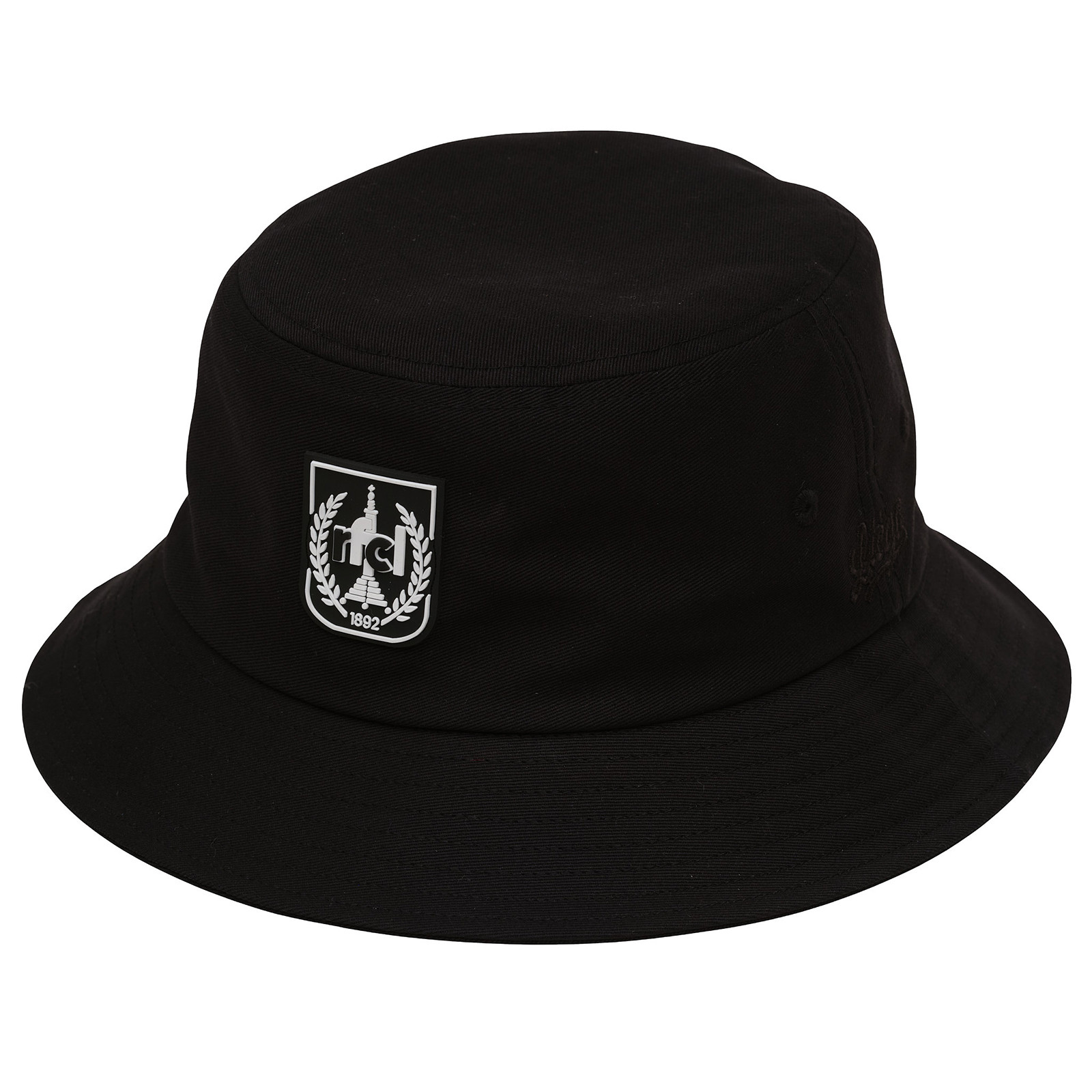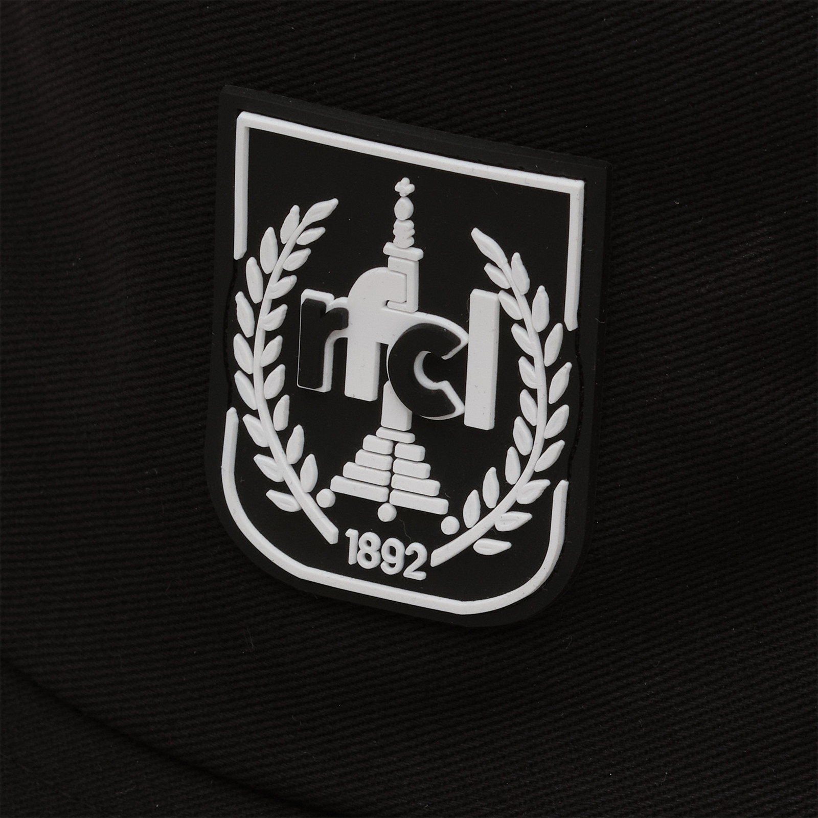 Taille unique – 100 % coton – Noir – Blason en silicone avec éléments en relief – Broderie fine “Liège” sur le côté – Œillets brodés en noir