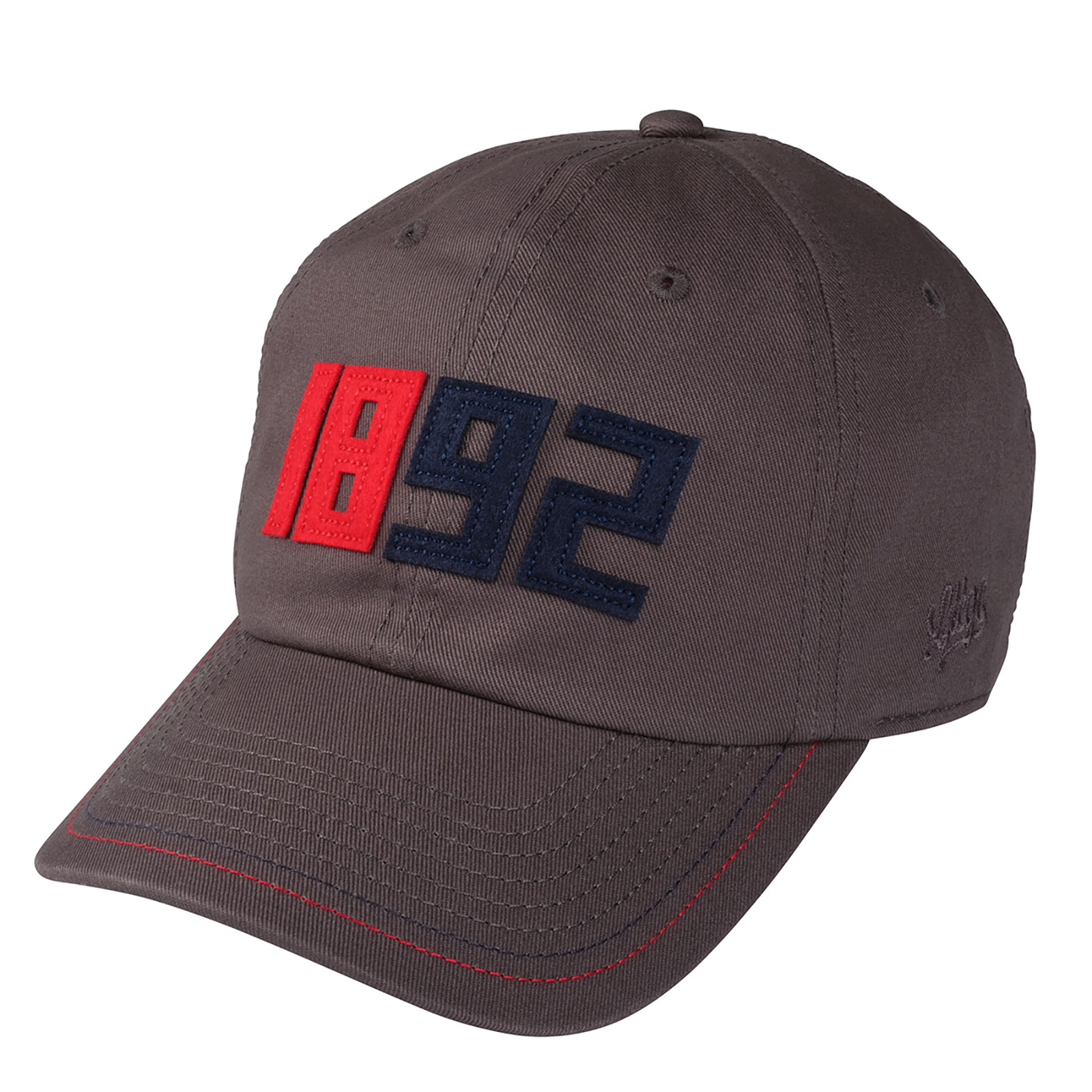 Modèle ajustable – 100 % coton tissé – Grise avec coutures rouges et bleu – 1892 en patch cousu à l’avant – Broderie fine « Liège » sur le côté – Etiquette Blason tissée à l’arrière
