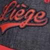 Bleu denim avec Liège en patch brodé rouge à liseré bleu à l’avant. Visière rouge.