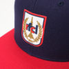 Modèle ajustable Snapback – 80 % acrylique et 20 % laine – Bleu marine avec penne rouge – Blason en silicone avec éléments en relief – Broderie fine « Liège » sur le côté – Etiquette Blason tissée à l’arrière