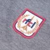 Double fil bleu marine & blanc – Blason en caoutchouc au niveau du cœur avec éléments en relief – Bande de propreté intérieure – Badge en caoutchouc « 4 » sur la manche droite de 3 cm de diamètre avec éléments en relief – Bande tissée Sang & Marine en bas à droite – Etiquette intérieure – Hang Tag